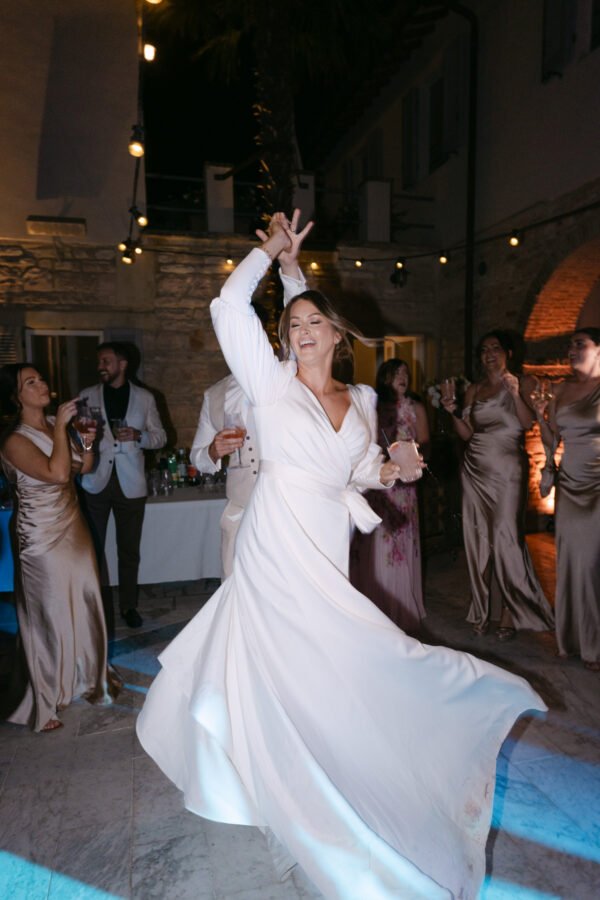 Le Stonghe is a perfect location for destination weddings because you can have everything in one place— there are spaces for getting ready, the ceremony, a cocktail, and reception with a party at the end of the day. On this wedding day, the staff at the venue transformed the reception space into a beautiful outdoor candle-lit dinner space. It was enchanting to say the least! The guests were served dinner surrounded by twinkling lights. Later, when the sun goes down more you’re able to catch the golden hour for portraits. These are the moments that literally feel magical. Even Jake and I had to pinch ourselves a couple times to make sure we weren’t dreaming!